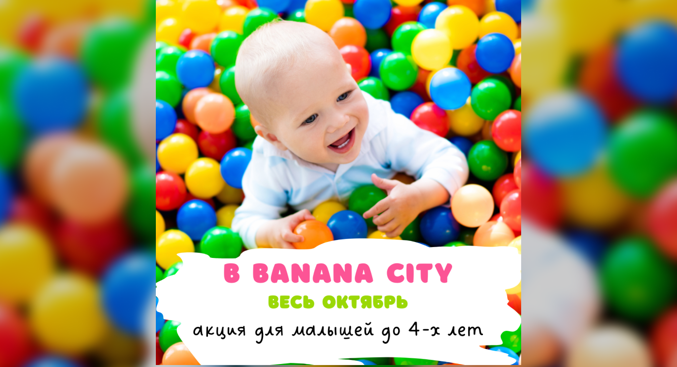 Весь октябрь в будние дни с 10.00 до 16.00 мы дарим вашему малышу возможность весело и активно провести время в нашем детском развлекательном центре Banana City! Оплатите первый час игры, а второй мы подарим вам абсолютно бесплатно!