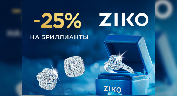 В ZIKO по 19 января фиксированная скидка -25% по карте клиента на изделия с бриллиантами!