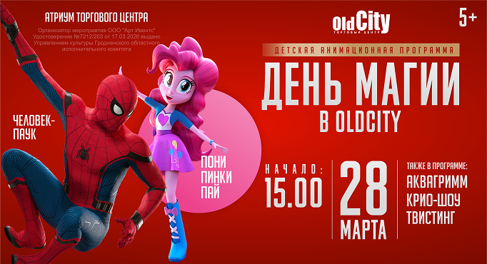 This Saturday, March 28, at 3:00 PM, the vibrant children's animation program "Day of Magic" will take place in the atrium of the OldCity Shopping Center. Admission is free!