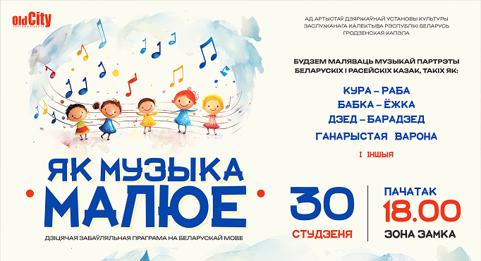 В рамках проекта «Кожная пятніца – роднае, сваё» OldCity продолжает знакомить детей и взрослых с красотой белорусской культуры. 30 января Вас ждёт детская развлекательная программа «Як музыка малюе...» от артистов Государственного учреждения культуры Заслуженного коллектива Республики Беларусь Гродненская капелла.