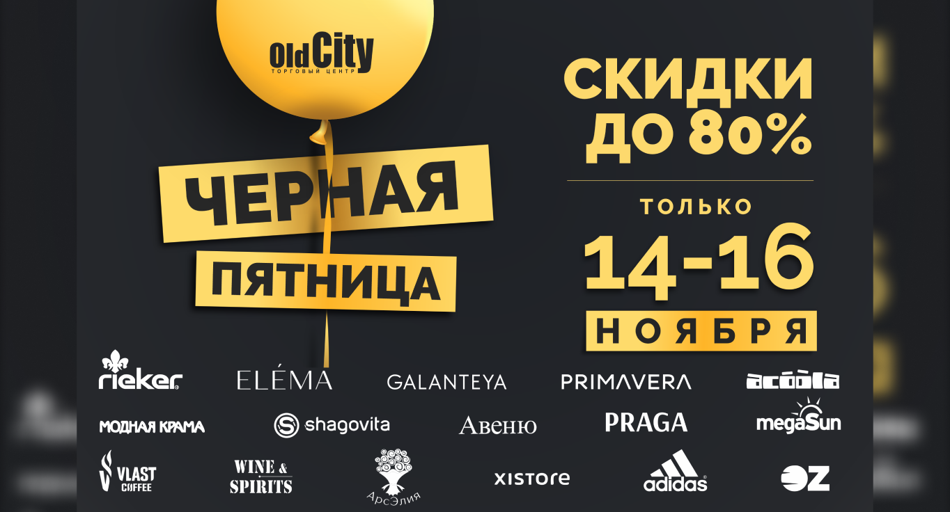 Осень — время не только уюта, но и самых выгодных покупок! Торговый центр OldCity приглашает на главное шопинг-событие сезона — Черную Пятницу, которая пройдет с 14 по 16 ноября (пятница-воскресенье). Собрали для вас акции от 16 магазинов, где каждый найдет свою выгоду: от модной одежды и обуви до косметики, книг и товаров для дома.